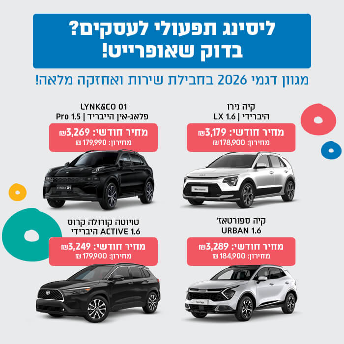 למבצעים נוספים ומחירים בנושא ליסינג תפעולי - התקשרו עכשיו 077-2317128
